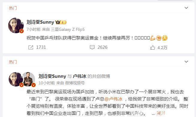 在“莎头组合”夺得金牌后,“小枣”刘诗雯在个东说念主微博中奉上道喜:“祝贺中国乒乓球队得到巴黎奥运首金!不息再接再厉!????????????????????[加油][拳头][饱读掌] ”