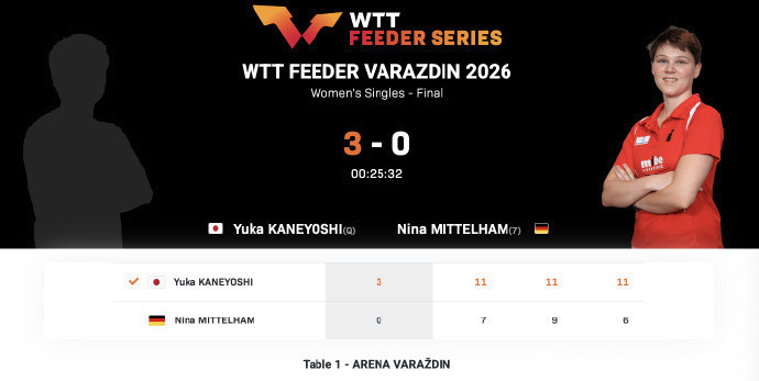 2026年WTT惯例挑战赛突尼斯站,中国队莫得派球员参赛。而稍早前的WTT支线赛瓦拉日丁站,中国队也莫得派球员参赛,日本女队派出二线威望出战。历程强烈争夺,日本选手兼吉优花夺得女单冠军,她在决赛中,以3-0投诚德国选手尼娜-米特兰姆。 WTT支线赛瓦拉日丁站截至后,兼吉优花背靠背出战。女单资历赛第一轮,兼吉优花直落三局以3-0投诚德国选手约瑟芬-纽曼,三局比分为:11-4、11-3、11-6;智利选手波琳娜-维加以3-1投诚人突尼斯选手玛丽亚姆-卜拉希米,四局比分为:11-5、11-2、8-11、11-4。